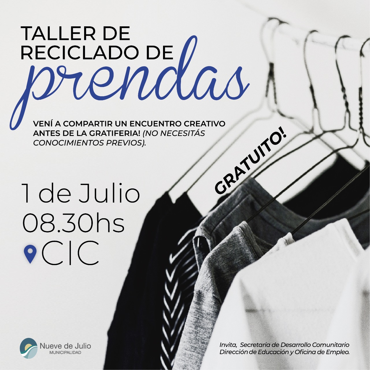 La Secretaría de Desarrollo Comunitario de la Municipalidad de Nueve de Julio, conjuntamente con la Dirección de Educación y la Oficina de Empleo, llevarán adelante un interesante taller de reciclado de prendas.