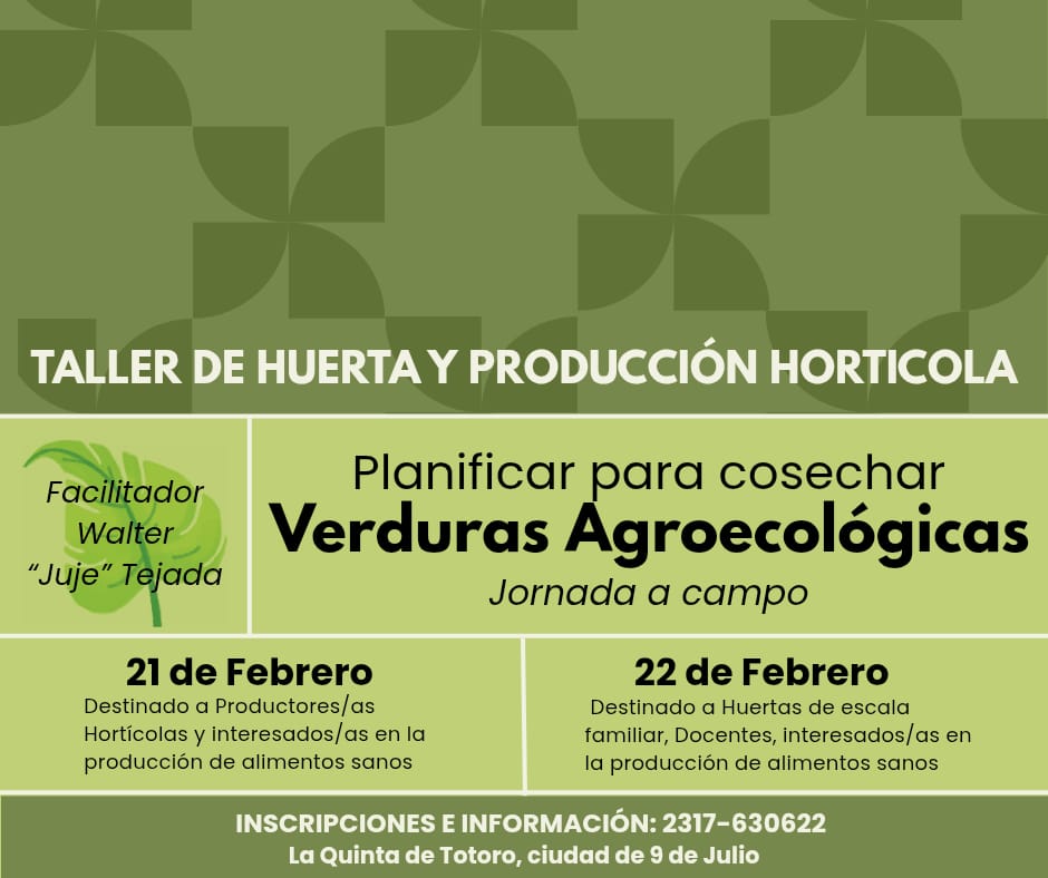 La propuesta se divide en dos enfoques diferenciados según el perfil del asistente. La jornada del sábado estará dedicada a productores que busquen escalar su actividad, optimizar la organización de sus cultivos o intercambiar experiencias técnicas sobre el terreno. Por otro lado, el encuentro del domingo se centrará en la escala doméstica y comunitaria, ideal para quienes desean transformar patios, escuelas o espacios barriales en fuentes sostenibles de alimento. Bajo la premisa de «Planificar para cosechar», los talleres se desarrollarán en las instalaciones de La Quinta de Totoro. Los interesados en participar pueden solicitar más información o realizar su inscripción a través de las redes sociales de la organización o mediante contacto telefónico al 2317-630622.