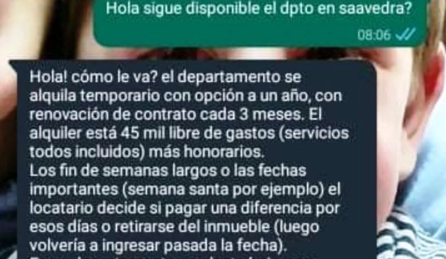 Hace algunos días, comenzó a circular en redes sociales, la captura de un chat con el responsable de una inmobiliaria local, donde detallaba las condiciones requeridas para alquilar un departamento en calle Saavedra, según da cuenta un artículo que publica La Voz de Tandil.