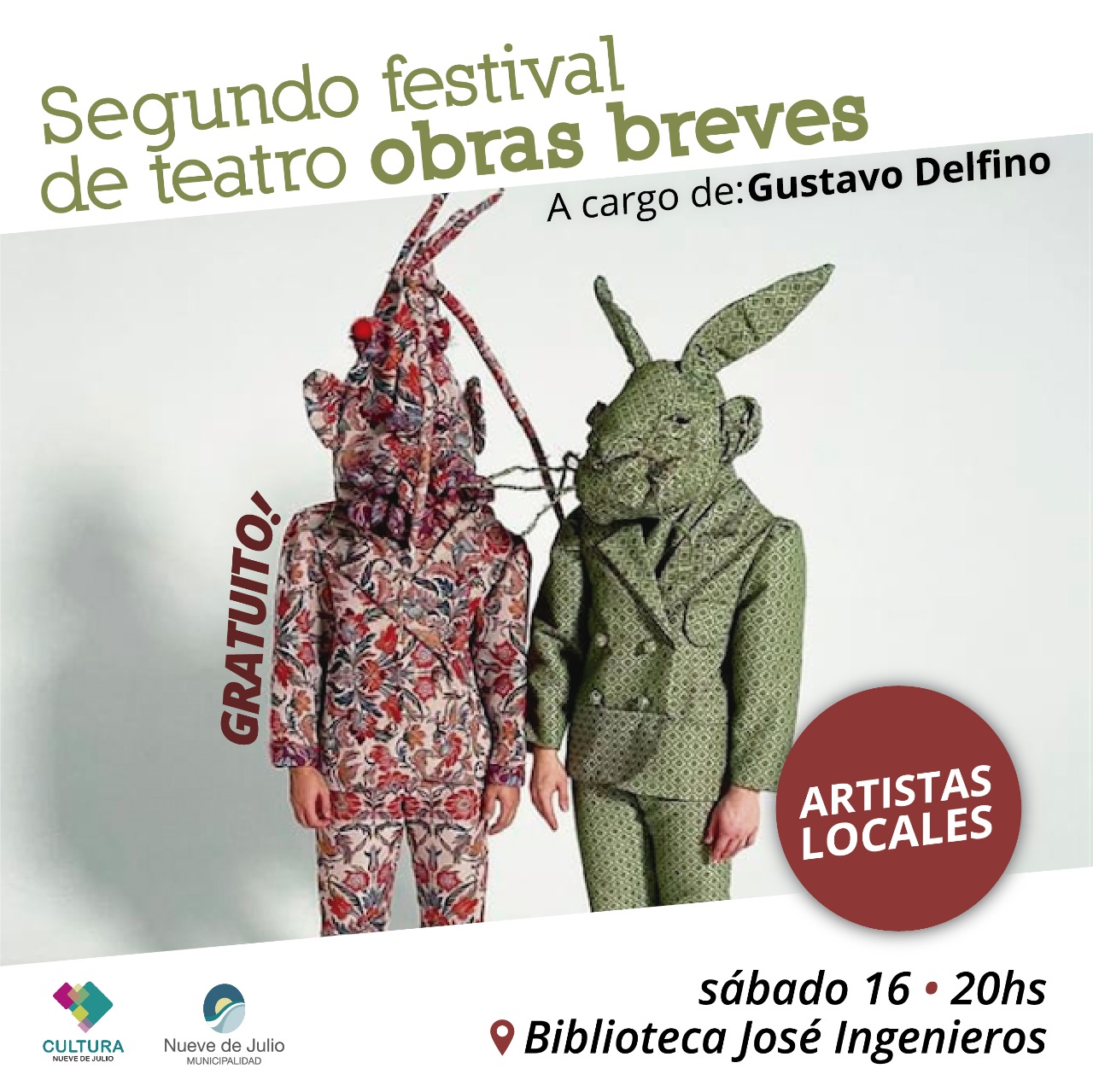 Desde la Dirección de Cultura de la Municipalidad de Nueve de Julio se está preparando el segundo festival de obras de teatro breves, que se presentarán el sábado 16 de julio, a las 20 hs., en la Biblioteca José Ingenieros, con acceso libre y gratuito y la coordinación del director Gustavo Delfino.