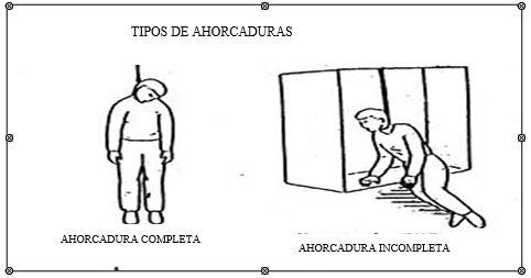 Figura 1: la figura muestra diferentes tipos de ahorcadura completa (izquierda) o incompleta (derecha). Fuente: Del Cisne Carpio Zapata, G. (2011)