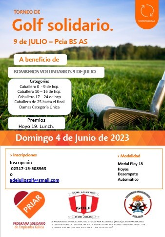 Tal como sucediera en el 2019, donde PRIAR junto al Golf Club desarrollaron un torneo solidario, en esta oportunidad el próximo domingo 4 de junio habrá de jugarse un Torneo Medal Play a 18 hoyos con desempate automático, entrega de premios, lunch, y la inscripción es a beneficio del Cuerpo de Bomberos Voluntarios de 9 de Julio, informaron desde ambas instituciones.