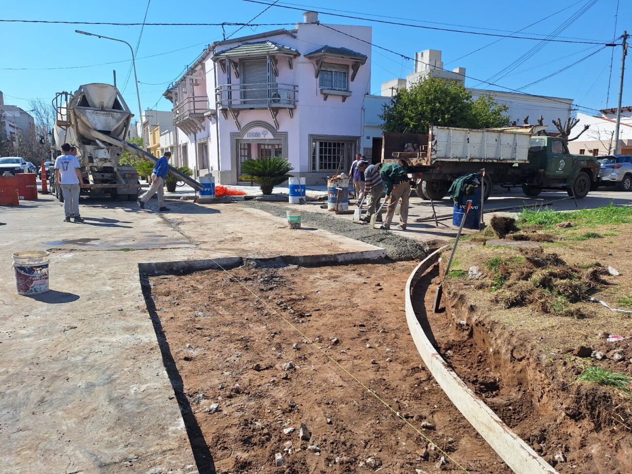 La secretaría de Obras y Servicios Públicos de la Municipalidad de Nueve de Julio trabaja en el hormigonado de la intersección de calles Libertad y Cavallari, reparando este sector de pavimento que se hallaba deteriorado.