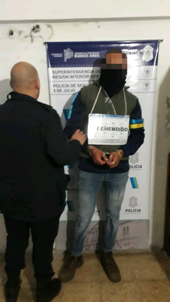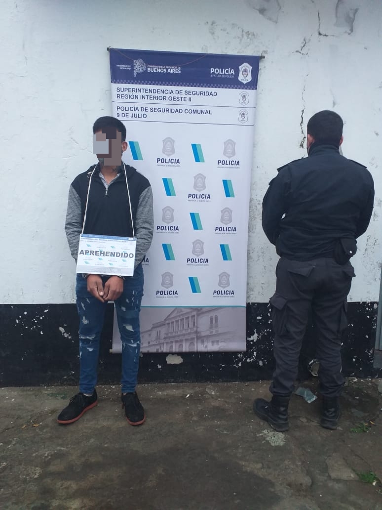 Parte policial: Se informa que en el día de ayer, en horas de la tarde, personal policial de la Estación de Policía de 9 de Julio junto a personal de la Sub DDI Bragado, en arteria Heredia al 700, procedió a la detención de un masculino de 25 años la cual fuera dispuesta por el Juzgado de Garantías numero 2 de Mercedes por el delito de Amenazas agravadas y Lesiones Leves. Asimismo y continuando con lo ordenado por el Juzgado de Garantías numero 2 de Mercedes en el marco de la misma causa, se procedió a realizar dos allanamientos. El primero de ellos en interior del Barrio Fonavi I y el segundo en Mariano Arce al 1600 de este medio con el fin de proceder al secuestro de elementos de interés para la causa el cual arrojó un resultado negativo. Intervino ufi 5 de Mercedes, detenido actualmente se encuentra alojado en Sub Estación de Policía de Dudignac y poseía múltiples antecedentes contra la propiedad. Dicho hecho se produjo en el mes de Mayo del corriente año en donde femenina de 27 años denunció al detenido de haber golpeado a su pareja masculino de 18 años, produciéndole lesiones, como así también amenazó de muerte a los presentes incluso a un menor de edad.