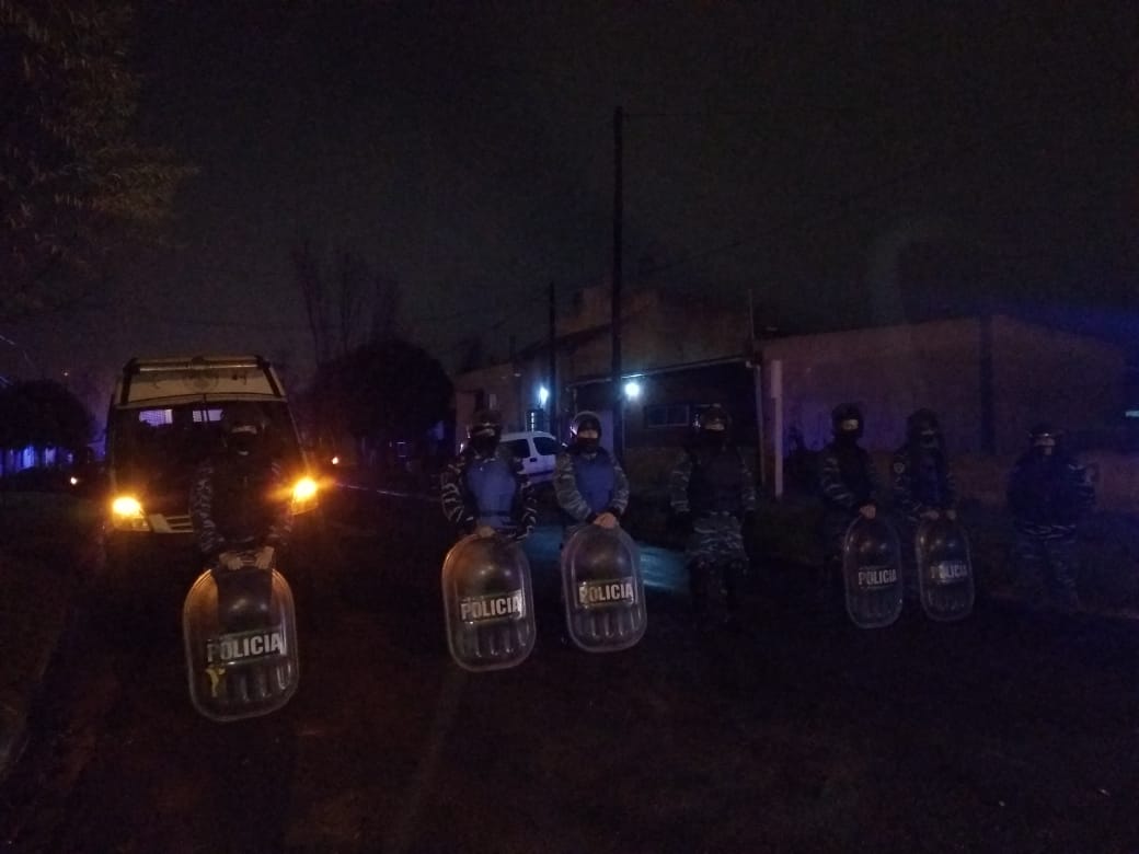 Detenidos actuaban amenazando a vecinos en forma.impune, lo que llevó a muchas personas a no denunciarlos por temor a sufrir futuras represalias por parte de los mismos, teniendo atemorizado al barrio. Que la investigación fue realizada por la Ayudantia Fiscal de 9 de Julio a cargo del Doctor Horacio Capurro, personal de este elemento y personal de la SUB DDI Bragado. Que en el.allanamiento realizado en el dia de la fecha se contó con la colaboración del GAD de 9 de Julio, Destacamento Vial de Julio, Infantería de Junín, personal SUB DDI Bragado, personal Destacamento French, Sub Estación de Policía Dudignac, personal de Comisaria Carlos Casares y General Viamonte. Masculinos actualmente se encuentran detenidos. Intervención UFI 5 Mercedes.