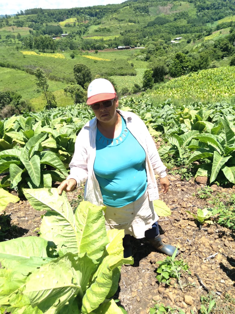 Con 54 años, ella trabaja a la par de su esposo en la misma tierra desde hace 34 años. Actualmente intenta sustituir la producción tabacalera por la frutihortícola: “Hacemos de todo un poco para vivir, el tabaco no lo dejamos todavía porque es lo único que nos asegura económicamente y nos da un buen plan de salud. Este año comencé a vender verdura, pero la inclemencia del tiempo nos jugó mal”, explica.