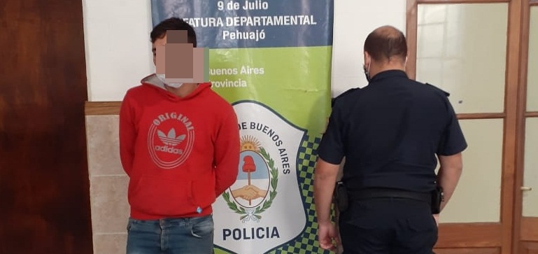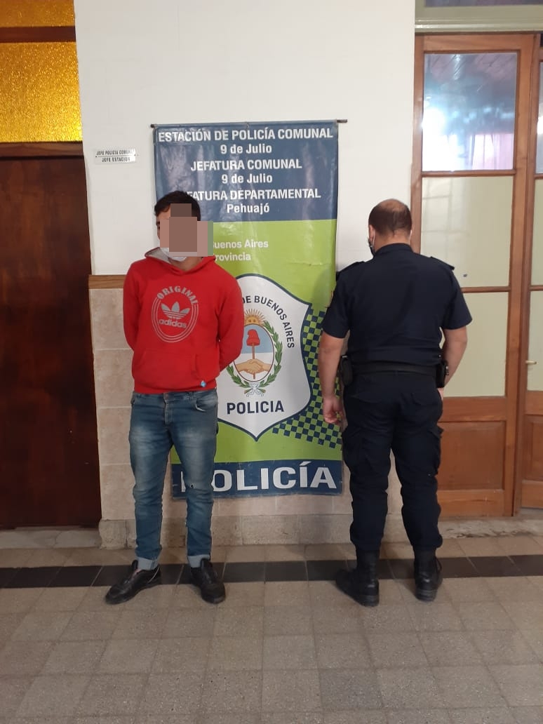 Parte policial: Personal policial de la estación de Policía Comunal de 9 de Julio a cargo del Sub Comisario Bruno Daniel Sbrissa, con la colaboración de la SUB DDI Bragado de tareas investigativas realizadas en vía pública, se procede a la detención de un masculino de 26 años con domicilio en esta localidad sobre el cual pesaba una orden de detención dispuesta por el Juzgado de Garantías número 3 de Mercedes por el delito de DAÑO SIMPLE, DESOBEDIENCIA Y LESIONES LEVES AGRAVADAS. Interviene UFI 5 Mercedes. Se aloja detenido en Sub Estación de Policia Dudignac. Que el hecho se produjo el día 22 de Abril del corriente año en curso donde la ex pareja del masculino realizó denuncia Penal en la Comisaría de la Mujer de esta localidad.