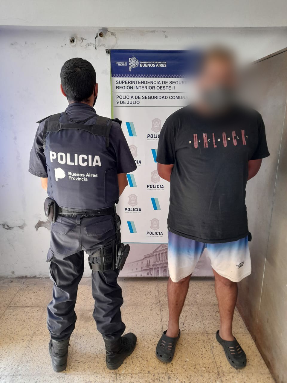 Parte policial: Ayer alrededor de las 15 horas, personal del GTO de la Estación de Policía de 9 de Julio junto a personal de la SUB DDI 9 de Julio, procedieron, en calle Lugones al 800 de este medio, a dar cumplimiento a orden de detención de un masculino de 33 años con domicilio en planta urbana de este medio  dispuesta por el Juzgado de Garantías número 1 de Mercedes por el delito de Amenazas simples y Desobediencia  en forma reiteradas (4 hechos) , en donde resultara víctima la ex pareja del sujeto femenina de 30 años. Todos hechos denunciados por la Victima en la Comisaria de la Mujer  por Violencia de Género. Interviene UFI 5 Mercedes. El masculino se encuentra detenido en la Sub Estación de Policía Dudignac y en la fecha comparecerá a fiscalía interviniente a fines de prestar declaración indagatoria a tenor Art 308 del C.P.P.