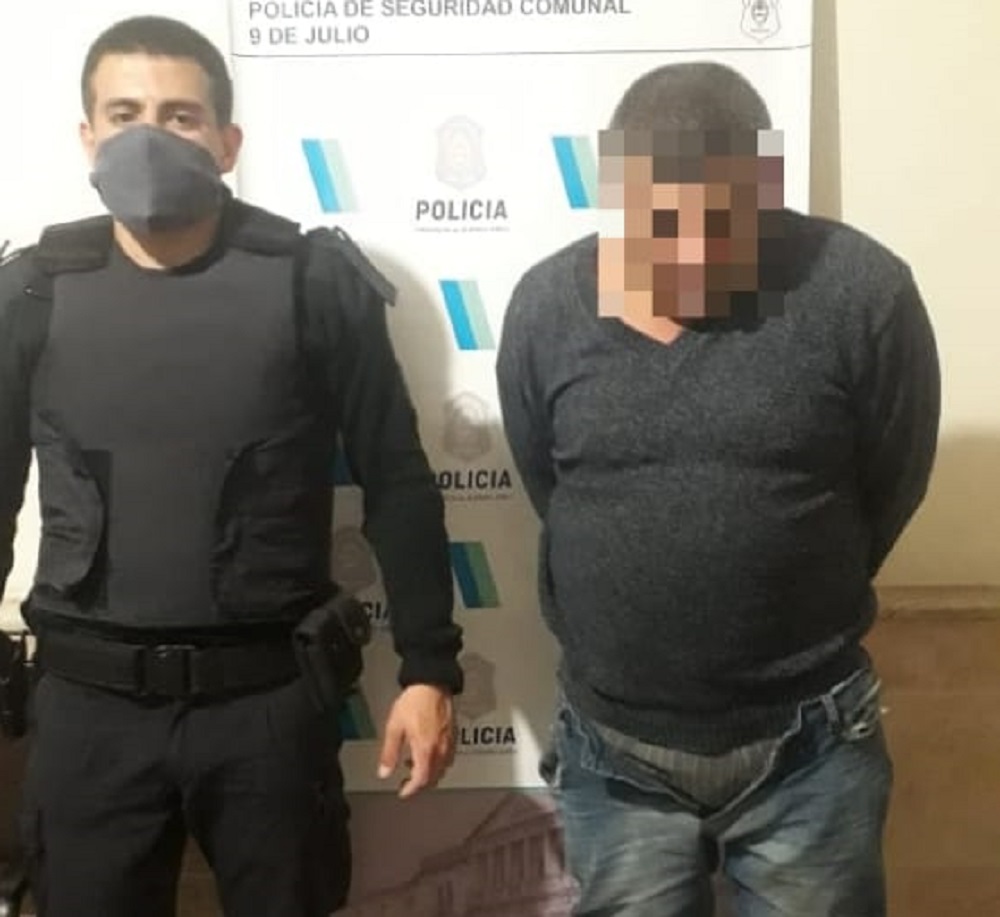 Parte policial: Se informa que en el día de ayer, siendo alrededor de las 23.00 horas, personal de la Estación de Policía de 9 de Julio, a raíz de un llamado al 911 se constituye a domicilio emplazado en Coronel González al 200, en razón que en el lugar habría una confrontación familiar. Arribados al lugar escuchan gritos de auxilio de una femenina provenientes del interior de la vivienda y al golpear la puerta de la casa observan la presencia de un masculino y una femenina con sangre en su rostro la cual solicitaba ayuda, siendo el masculino que cierra la puerta de ingreso, impidiéndole el paso del personal policial, como así también salir a la femenina hacia el exterior de la vivienda. Ante ello personal policial ayuda a la víctima a salir de la vivienda por una ventana lateral, siendo el masculino que intenta tomar de arriba de la mesa de la vivienda un cuchillo y agredir a los uniformados con los cuales forcejea, lográndose su aprehensión inmediata, tratándose de un sujeto de 44 años de edad. Que en relación a la femenina de 40 años poseía lesiones de carácter leves. Ademas de lo narrado, el sujeto poseía una medida cautelar emanado por el Juzgado de Paz Local de 9 de Julio de prohibición de acercamiento del masculino para con la femenina y también le había sustraído dinero en efectivo y un celular el cual fue rápidamente incautado en el lugar y entregado a la víctima. Masculino se encuentra detenido por el delito de Privación Ilegal de la Libertad- Desobediencia- Lesiones Leves Agravadas- Amenazas Agravadas-Hurto- Resistencia a la Autoridad a disposición de la UFI 5 de Mercedes a la cual comparecerá día de mañana fines prestar declaración indagatoria a tenor Articulo 308 del C.P.P.