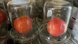 En referencia al impacto en la vida útil de los tomates, Cristos explicó que “a partir del día 5, las dos variedades Yigido y Alamina, sin tratamiento, comenzaron a presentar señales de deterioro por presencia de micelio blanco que fue creciendo al pasar los días en ambas variedades”.