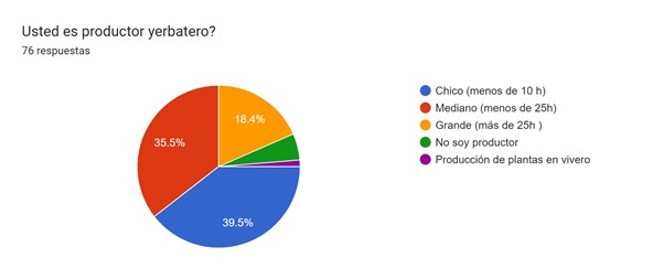 El gráfico muestra que las respuestas obtenidas provienen de productores pequeños, medianos y de otros otros agentes de la producción yerbatera con interés en el tema, intentando reflejar la opinión general del sector.