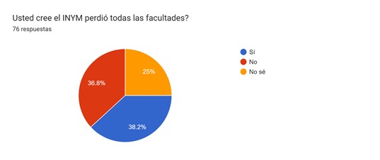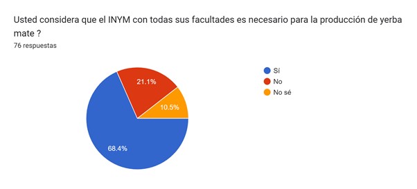 Para concluir  con las preguntas relacionadas con el INYM, una amplia mayoría de los encuestados consideró que el instituto con todas sus facultades es menester para la producción de yerba mate, afianzando la defensa del mismo debido a  la necesidad de mantener el equilibrio que el Instituto le otorgaba a la cadena yerbatera.