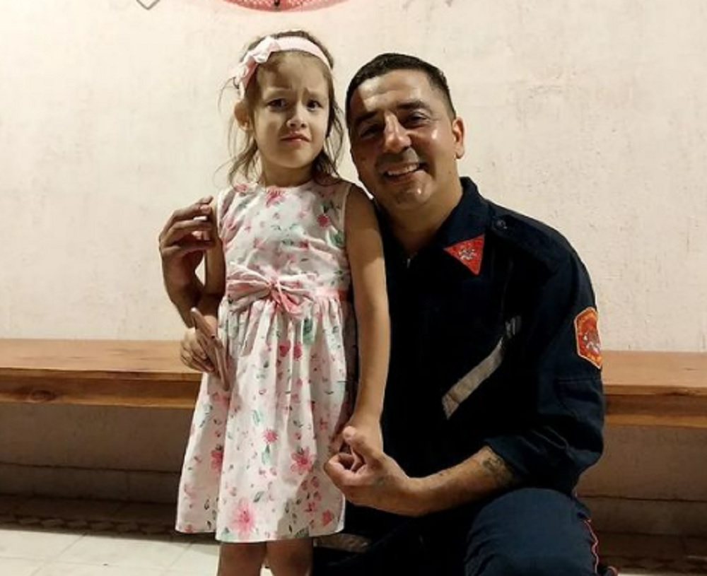 Hace unos días, el Sub Oficial Sub Ayte SANTIAGO GASPARI, fue como tantas otras veces cumpliendo su rol de papá, a acompañar a sus hijas a un cumpleaños. En un momento determinado, alguien notó que en la pileta había una niña pequeña flotando boca abajo, un familiar la saca del agua y Santiago pide a la niña que se encontraba sin signos vitales. Al constatar esto, inmediatamente comenzó maniobras de RCP, de forma continua hasta que, GRACIAS A DIOS, la niña recuperó la conciencia, luego fue asistida por el servicio de emergencias de ambulancias y más tarde en la guardia del hospital Julio de Vedia.