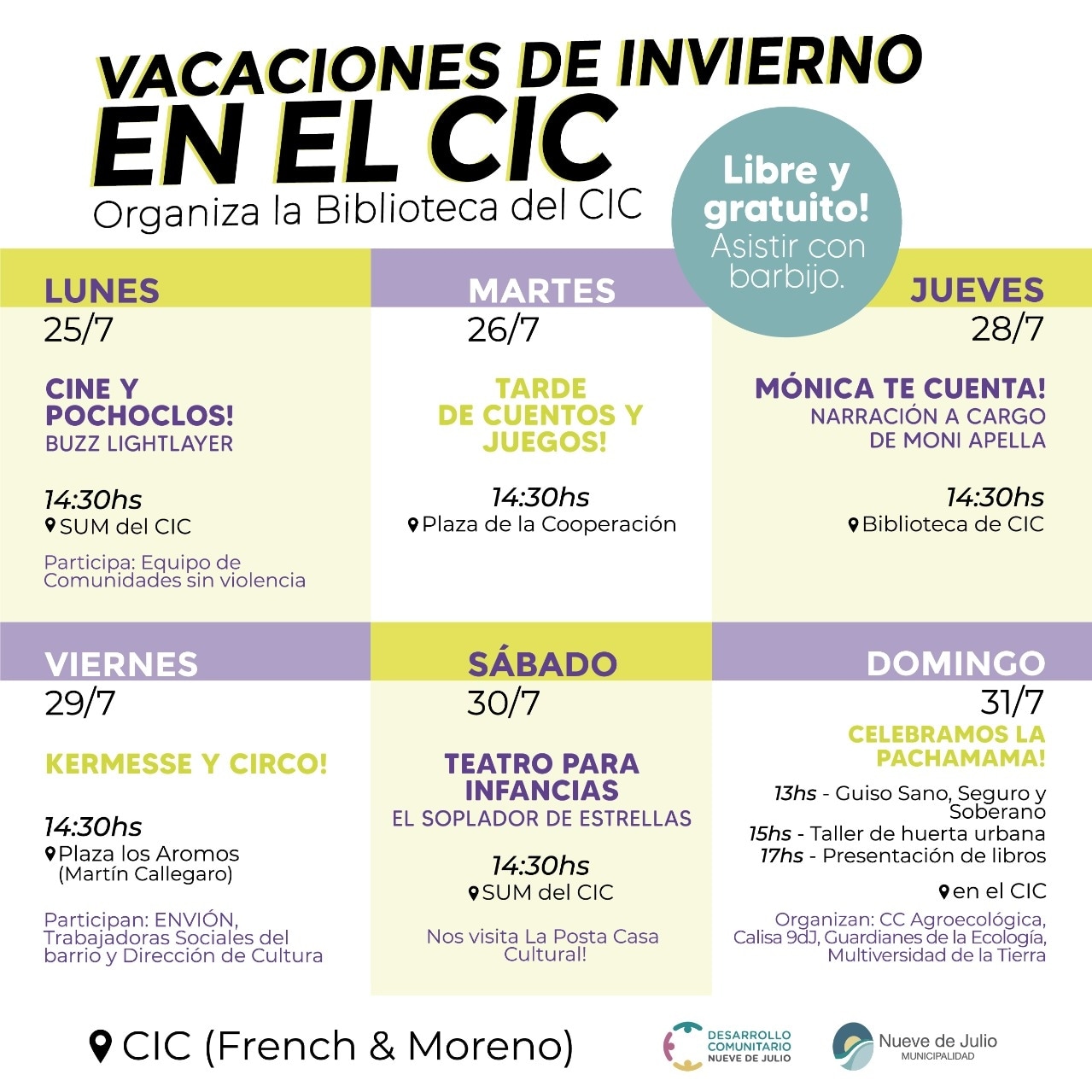 La Secretaría de Desarrollo Comunitario de la Municipalidad de Nueve de Julio, invita a participar de las actividades recreativas organizadas desde la biblioteca del CIC.
