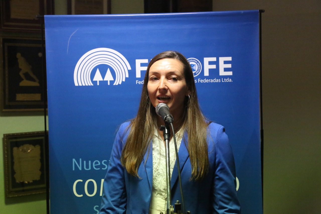 El rol que ella desempeña está respaldado por las grandes redes de trabajo: la colaboración y el acompañamiento de todos a su lado. Lo mismo ocurre con las personas que trabajan en la administración y gerencia de la Cooperativa, incluso gracias al apoyo de FECOFE (Federación de Cooperativas Federadas Ltda ). “Me puse en contacto con Anto y Sofía, les comenté mi intención de organizar algo para el día internacional de la Mujer Rural, que finalmente se realizó en la Cooperativa, el 13 de octubre pasado, en el marco de las fiestas patronales del pueblo. Ellas se encargaron de buscar posibles temas y propusieron disertantes. Lo charlamos y decidimos la temática: la igualdad de género y el trabajo de las mujeres en las cooperativas y mutuales. Estoy agradecida y muy feliz de haber podido concretar este evento; fue una linda celebración.”, cuenta entusiasmada.