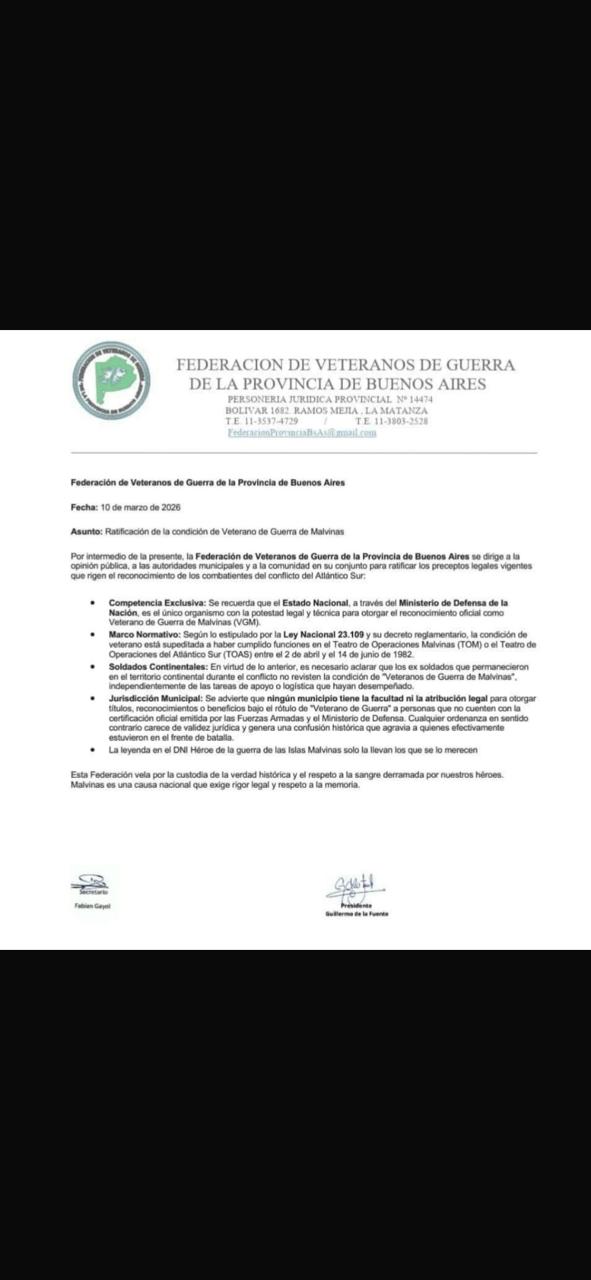 La Federación ha sido enfática al señalar que el Estado Nacional, a través del Ministerio de Defensa, es el único organismo con la potestad legal para otorgar este reconocimiento oficial. En este sentido, el comunicado advierte que ninguna autoridad municipal tiene la atribución de conceder títulos o beneficios bajo el rótulo de «Veterano de Guerra» a individuos que no cuenten con la certificación oficial de las Fuerzas Armadas. Cualquier normativa local que contradiga esta disposición es considerada por las organizaciones como carente de validez jurídica.