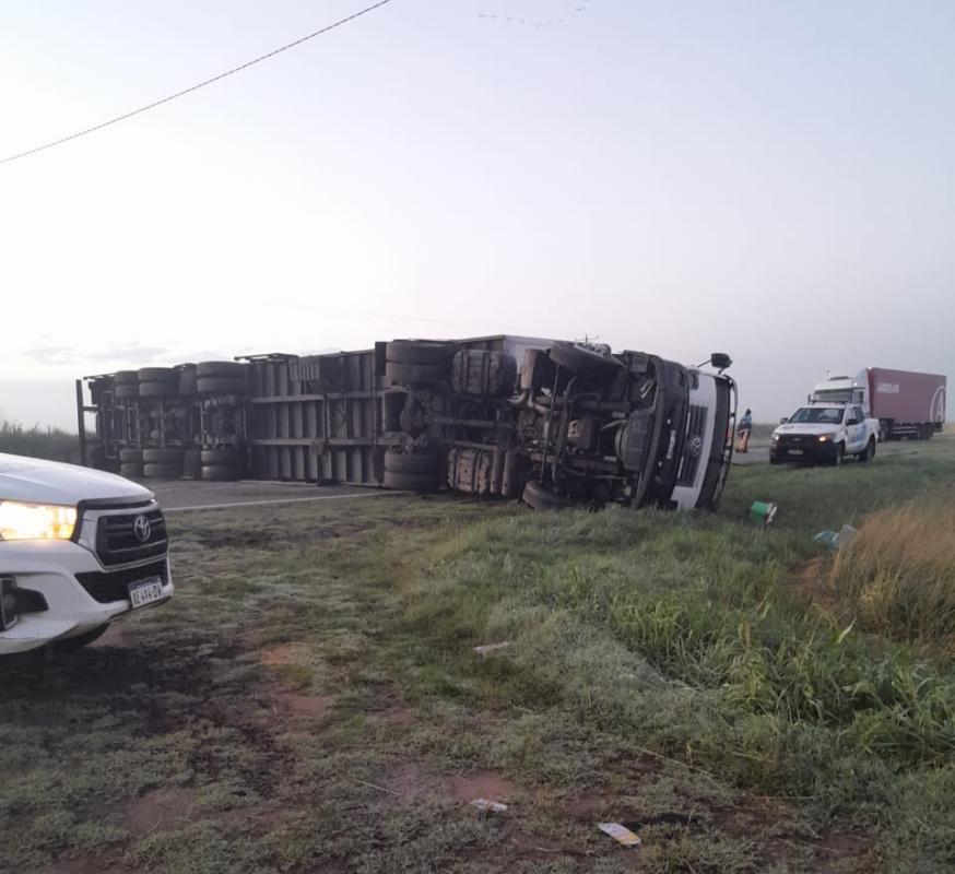 Minutos antes de las 7 de la mañana de este miércoles, se reportó el vuelco de un camión en ruta Nacional 5 sobre el kilómetro 227 sentido Bragado – 9 de Julio.