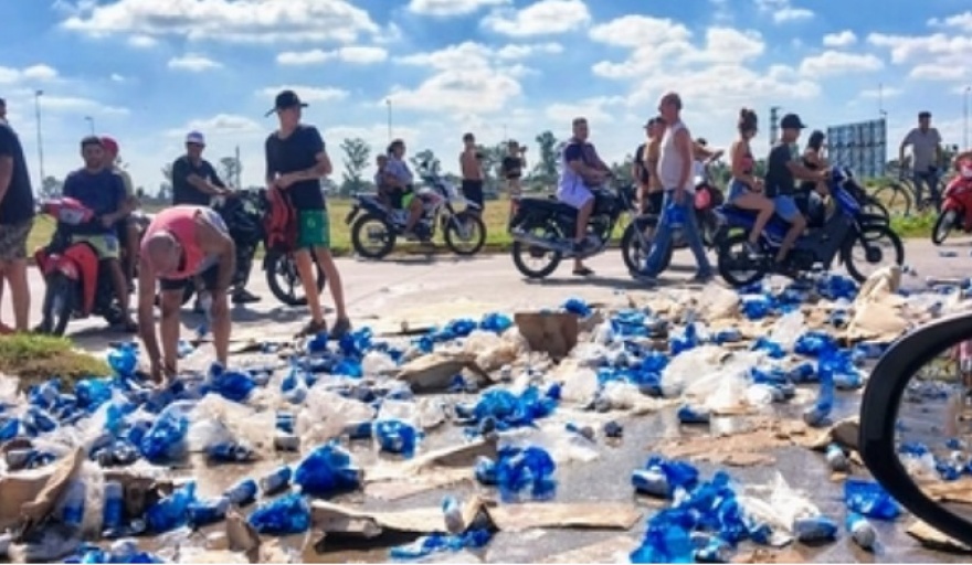 Inmediatamente de ocurrido el siniestro, vecinos que circulaban por el lugar comenzaron a llevarse los packs de latas, saqueando toda la carga. Mientras la policía intentaba frenar el saqueo, un grupo de personas hirió a uno de los agentes que tuvo que ser trasladado de urgencia.